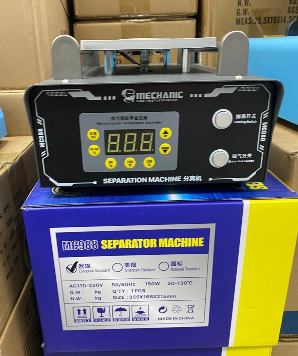 Mechanic MC988 Separation Machine, cep telefonu tamir işlemlerinde kırık cam ile LCD ekranı güvenli şekilde ayırmak için tasarlanmış profesyonel bir ekran ayırma makinesidir. Isıtmalı tabla sistemi sayesinde ekranı kontrollü şekilde ısıtarak cam ve LCD arasındaki yapıştırıcıyı yumuşatır ve ekranın zarar görmeden ayrılmasını sağlar.