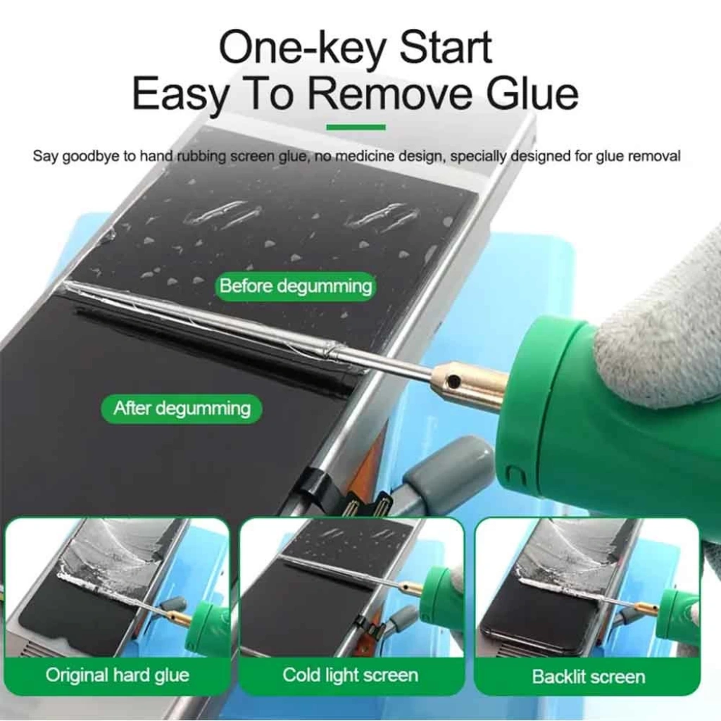 Zahmetsiz Tutkal Çıkarma: Kimyasal kullanmadan kavisli, arkadan aydınlatmalı, soğuk ışıklı, orijinal sert tutkal ve OCA ekranlardan tutkalı kolayca çıkarın.